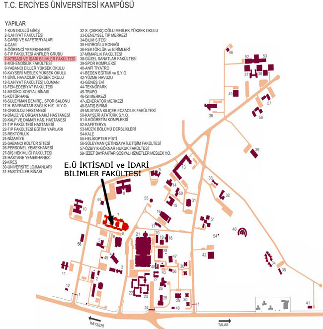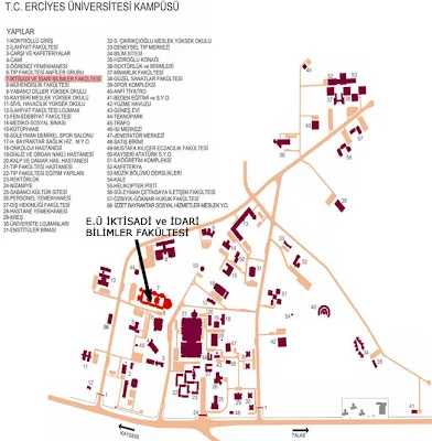 -Ana Kampüs (Kayseri merkez): Mühendislik, Fen-Edebiyat, Eğitim fakülteleri burada yer alır.